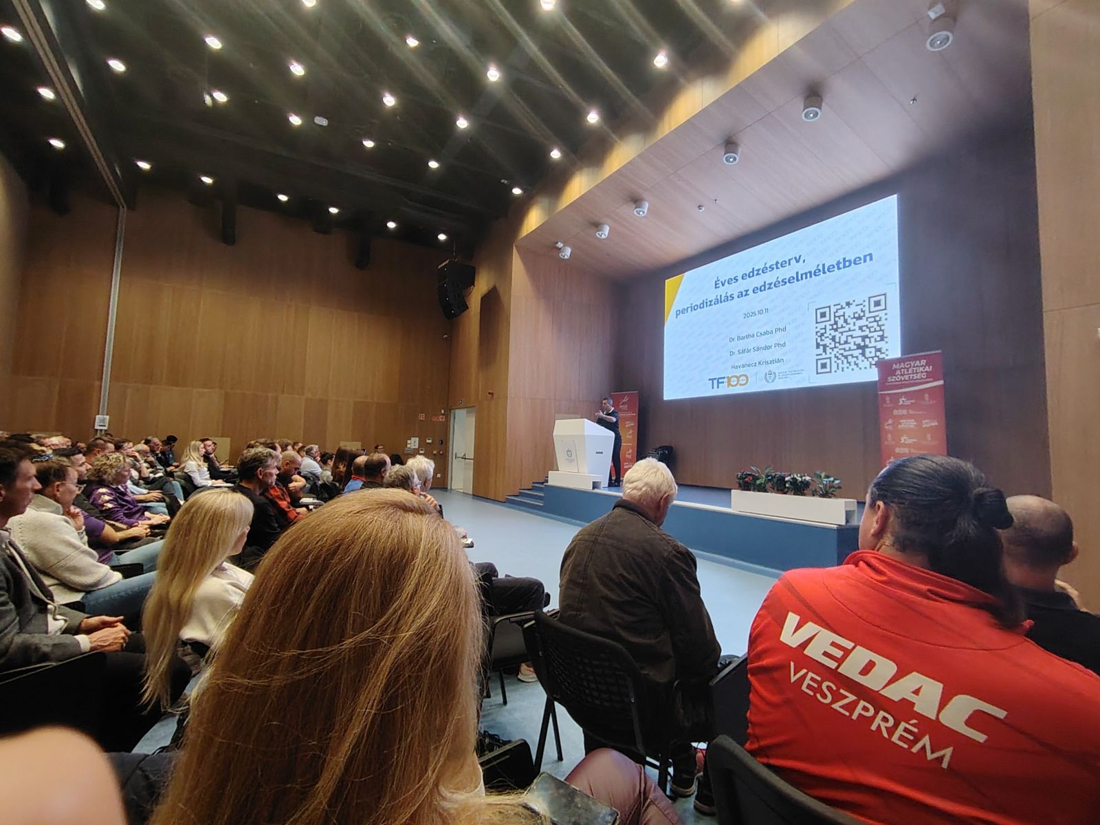 A szombati napon hazai előadók tartottak előadást edzéselméletről, edzéstervezésről. Már amennyire a Németországban élő, és dolgozó Kiss Tamást, az ugró szakág vezetőjét hazai szakembernek lehet nevezni. Nagyon hasznos előadásokat hallottunk, és már fejben tervezgetik is az edzők a felkészülést a 2026-os évre, sőt akadnak olyanok is, akik már elkezdték az alapozást a következő szezonra. A Szekszárdi Sportközpont atlétika szakosztályát Péterbence Csilla és Scherer Tamás képviselték a két napos konferencián.